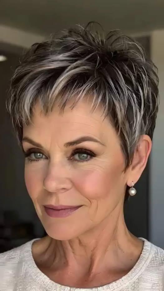 The best of both worlds: shorter at the back and sides like a pixie, but with slightly longer front pieces that skim the jawline like a bob. This style opens the face beautifully, adds volume at the crown, and requires almost no styling time. A cut that looks intentional even when you’ve just rolled out of bed.