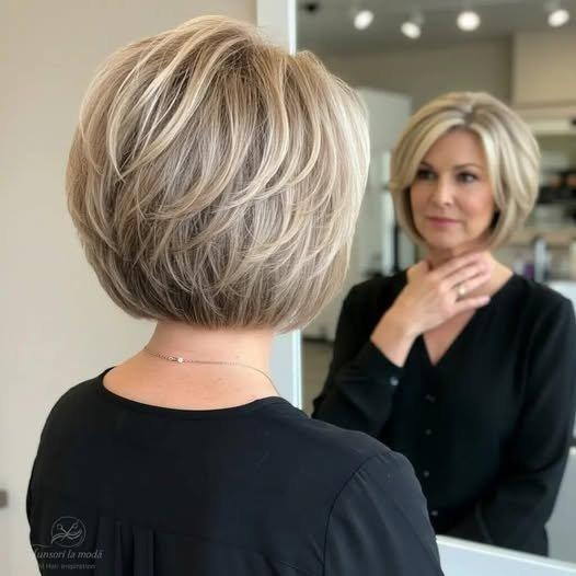 💡 Styling Tip: A round brush blowout emphasizes the stacked shape. Ask your stylist for subtle stacking, not too dramatic, to keep it wearable.