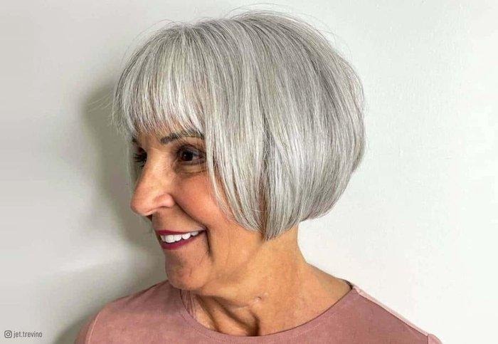 Silver cloud bob with fringe — full, soft, beautifully shaped