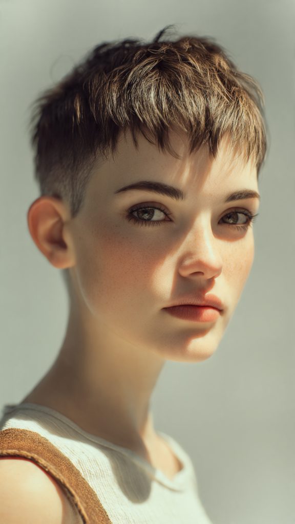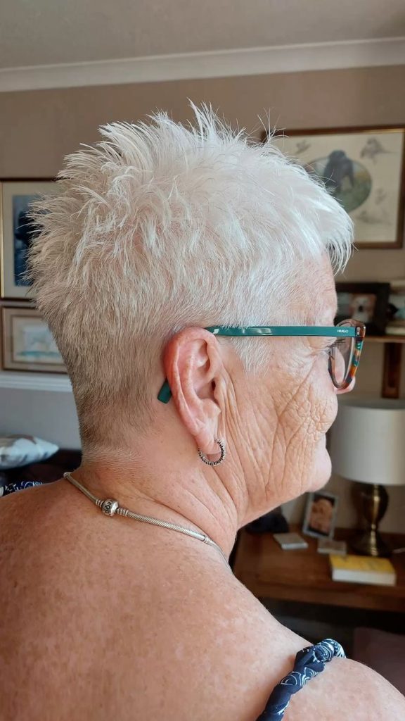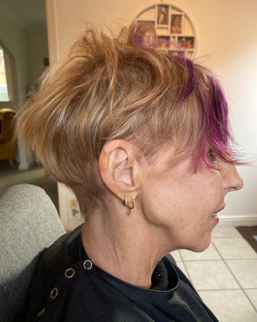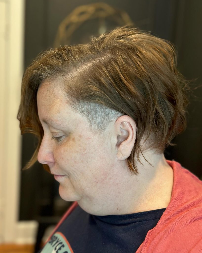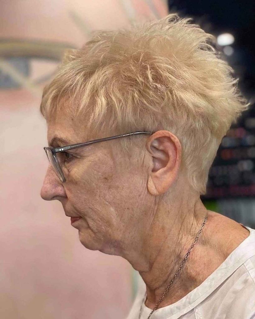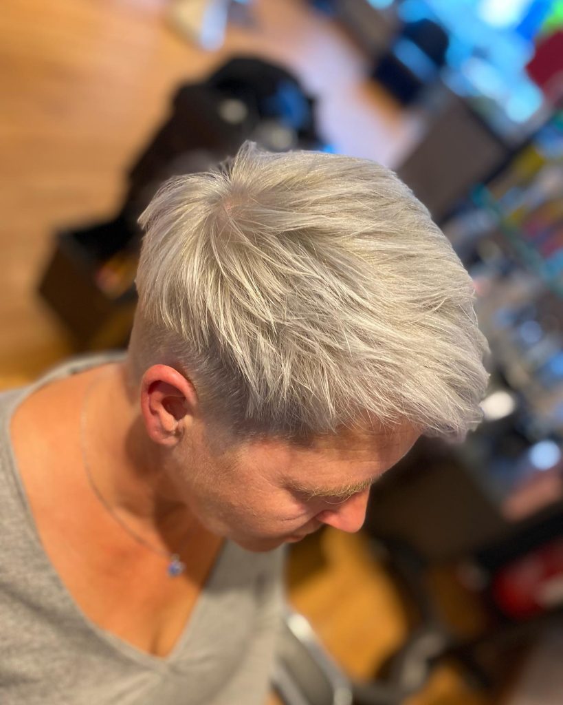 Why it works: This cut is very short at the nape of the neck (often faded or tapered) with slightly more length on top. It’s cooling, comfortable, and ideal for women who wear glasses or hearing aids.