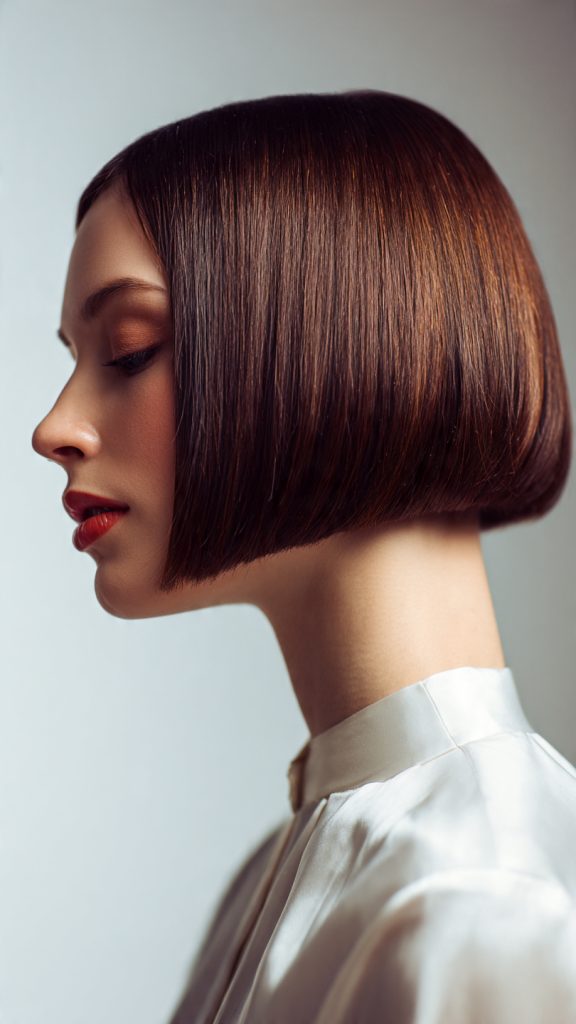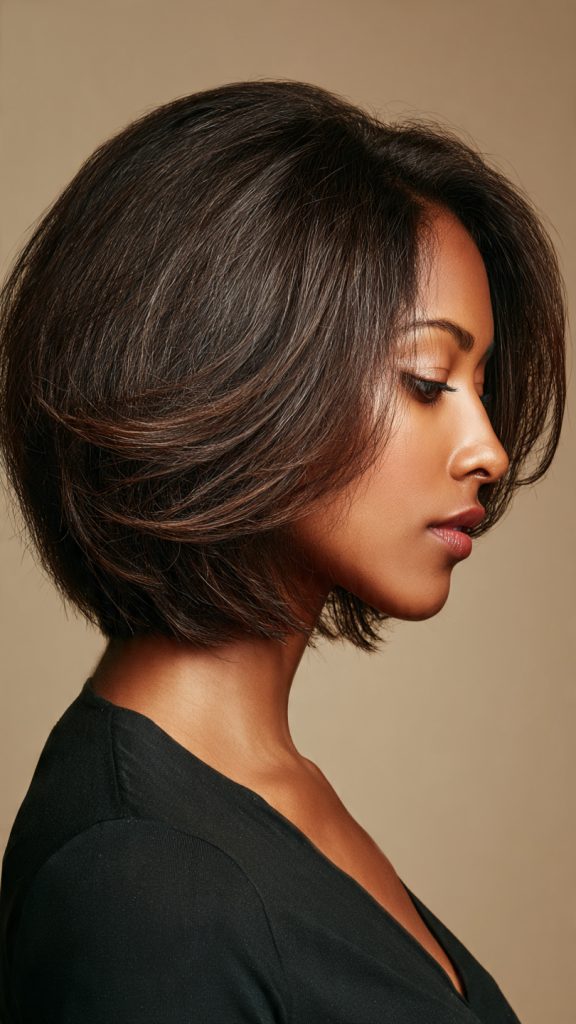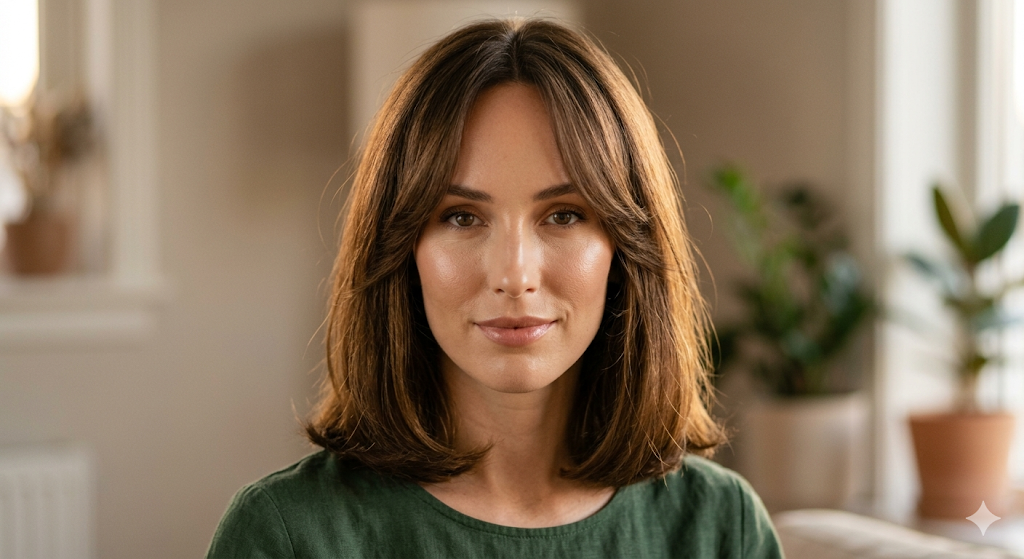 Styling tip: Add long, face-framing layers to prevent a “helmet” effect. Blow-dry with a round brush for a gentle curve inward, or let it air-dry for a relaxed, wavy finish.
