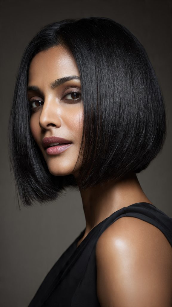 Why it works: A bob that ends right at the chin is universally flattering, especially for oval and heart-shaped faces. It offers more styling versatility than a pixie but remains easy to manage.