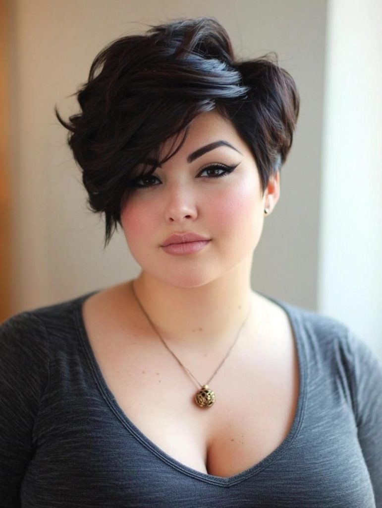 In this version, the bob pixie embraces natural waves to create a soft, romantic profile. The back is expertly tapered to sit close to the neck, while the top layers are kept long enough to allow for deep, undulating texture. These waves provide natural “lift” and a rounded shape that adds fullness to the back of the head. It is a brilliant example of how a shorter cut can still feel feminine and soft by working with the hair’s natural movement rather than against it.