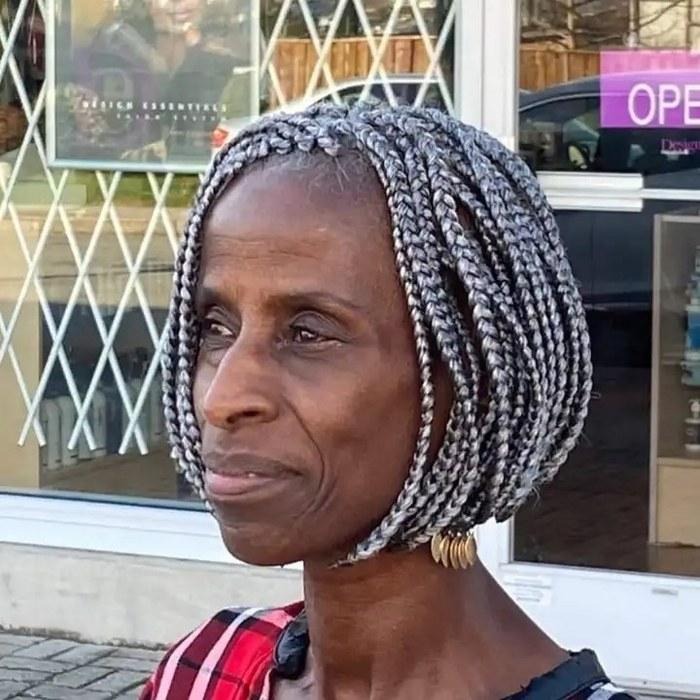 Short gray box braid bob — structured, chic, and completely effortless to maintain