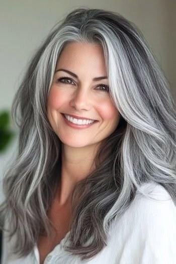 Long gray hair is one of 2026’s most powerful beauty statements. It signals confidence, self-assurance, and a complete lack of interest in hiding who you are. The key at longer lengths is keeping the hair healthy — gray hair tends to be coarser and drier, so regular deep conditioning and trimming are non-negotiable. The silver balayage and root smudge techniques work particularly well on long hair because the grow-out is so graceful.