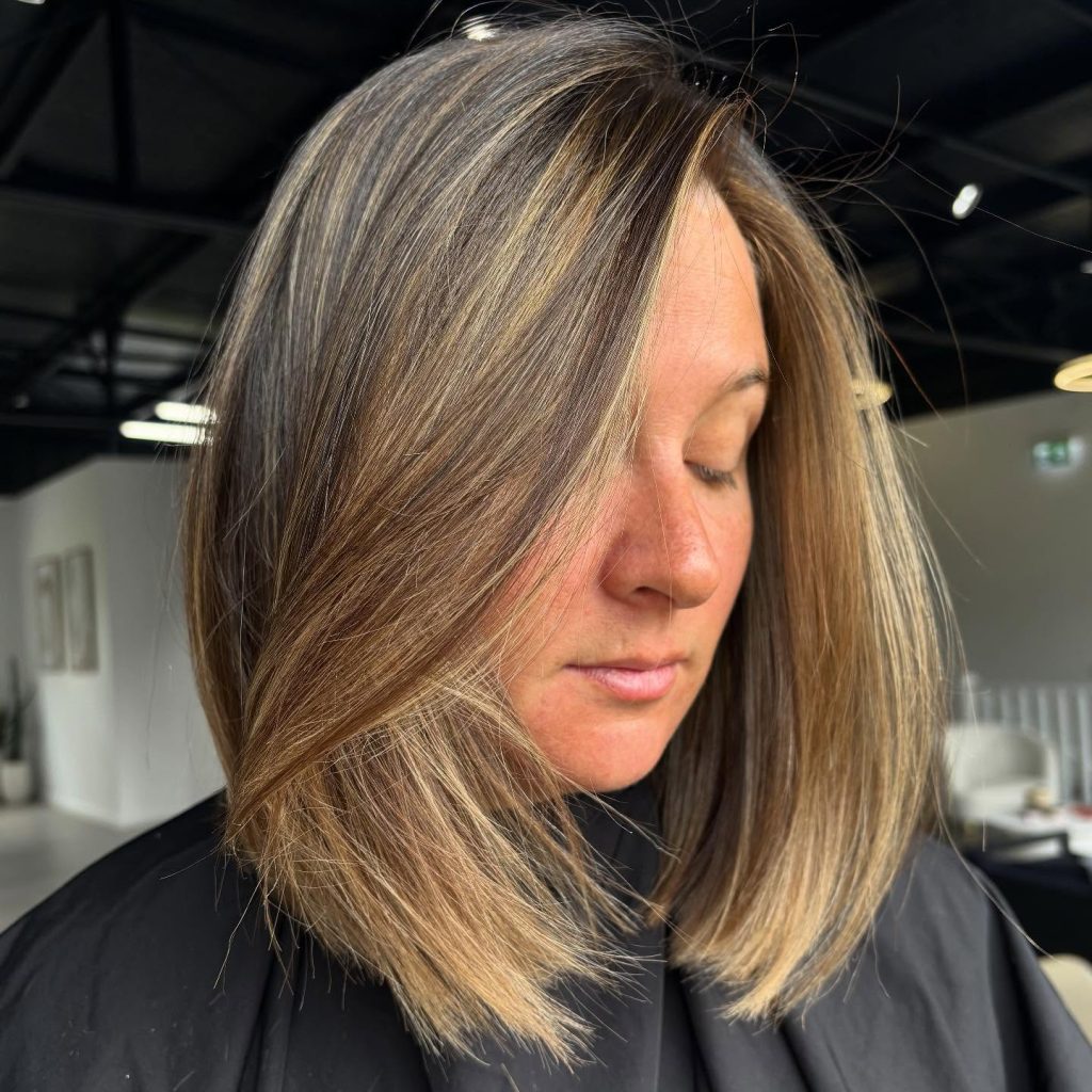 A masterclass in face-framing, this version uses warm, honey-toned highlights to add depth to a soft, collarbone-length cut. The invisible internal layers allow the hair to curve slightly inward, creating a voluminous, healthy look that transitions gracefully from a salon blowout to an lived-in, everyday style.