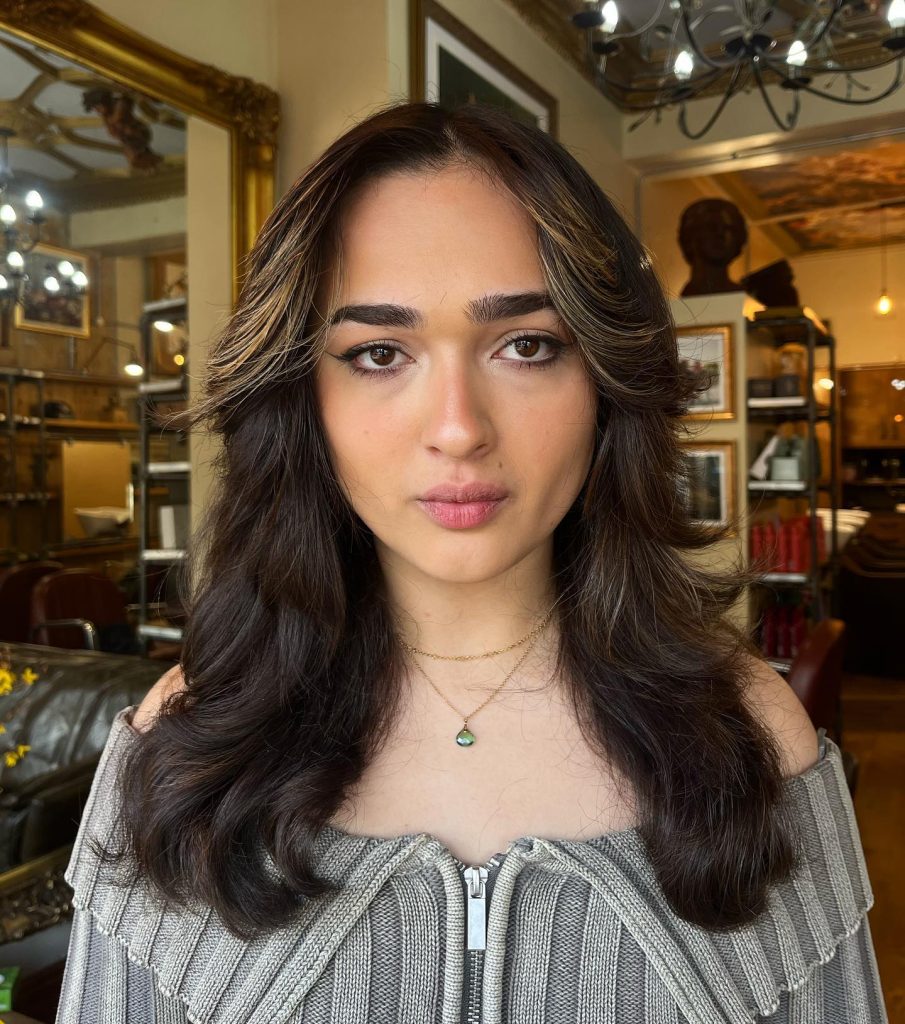 A sophisticated take on long hair, this brunette shag utilizes delicate face-framing layers to highlight the cheekbones and jawline. The soft, caramel-toned balayage adds dimension to the gentle waves, proving that a shag doesn’t have to be “messy” to be effective. It is an ideal example of how internal layering can create movement and body in long hair without sacrificing the overall length.