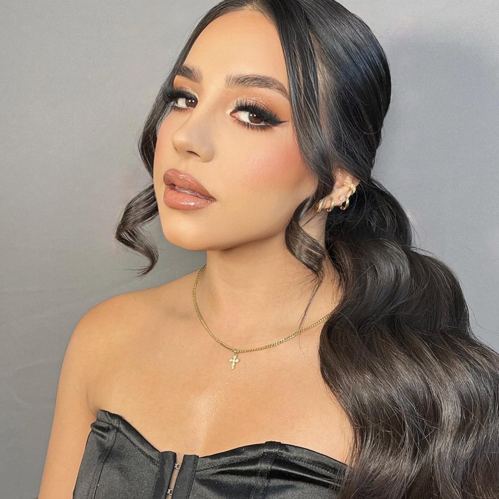For an oval face shape, the goal is to maintain the natural symmetry without over-elongating the silhouette, and these voluminous side-swept waves achieve exactly that. By parting the hair deeply on one side, it adds a touch of lateral width at the temple and cheekbone level, preventing the face from looking too narrow. The soft, structured curls provide movement that complements the balanced proportions of an oval frame, showing how a “classic” look can be used to highlight a lack of sharp angles.